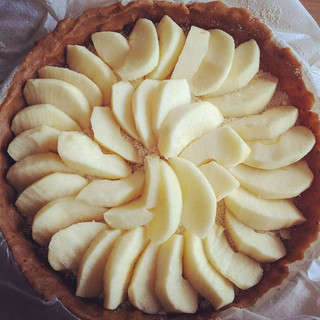 250 g de farine, 125 g de beurre Bleu Blanc Coeur, 1 oeuf Bleu Blanc Coeur, 3 grosses pommes bio, 100 g de poudre d'amandes et du sirop d'Ă©rable đšđŠ